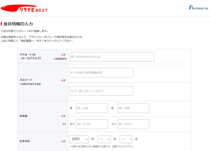 リクナビNEXTの登録方法